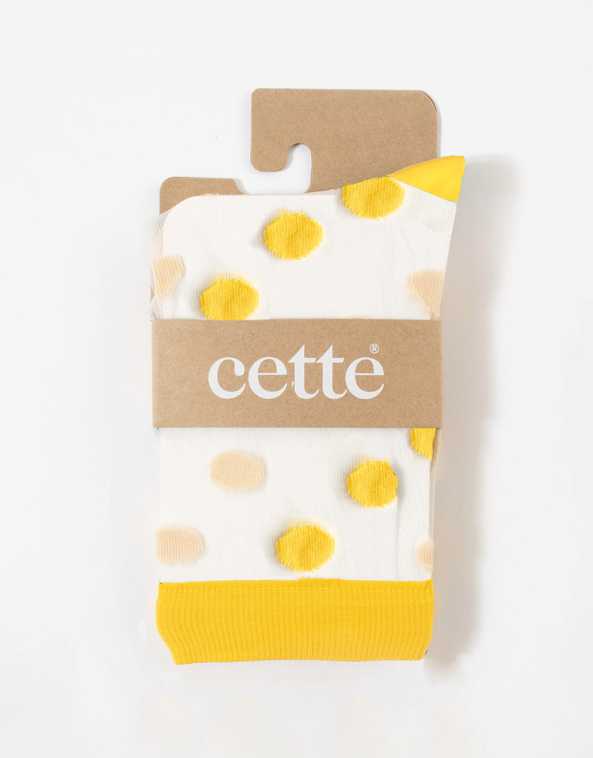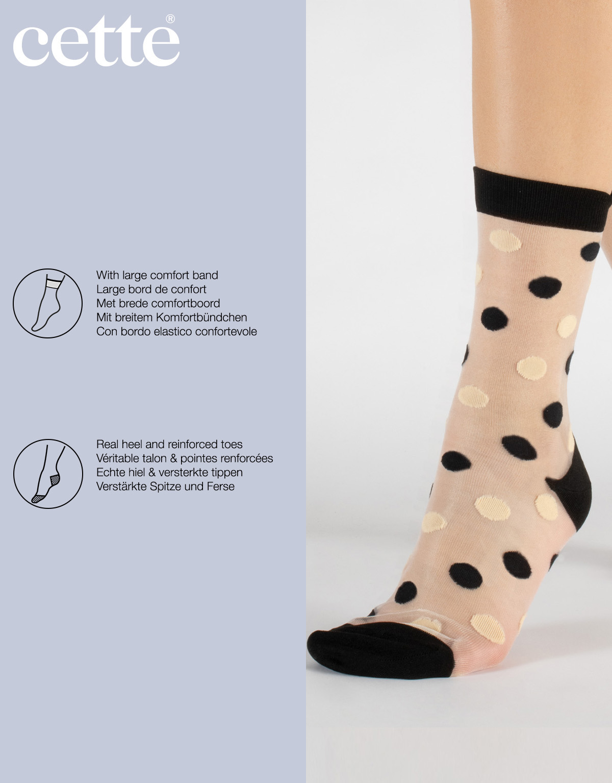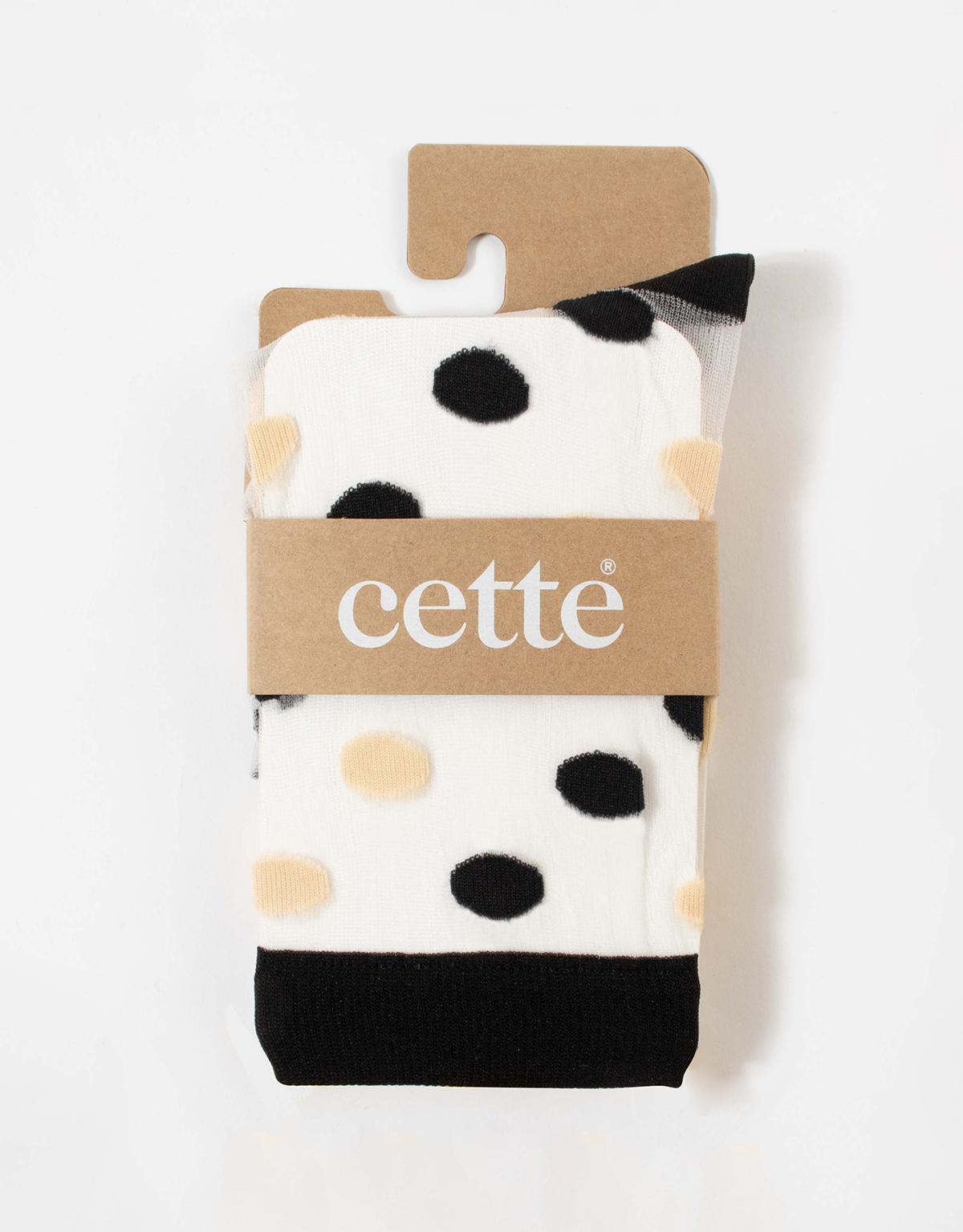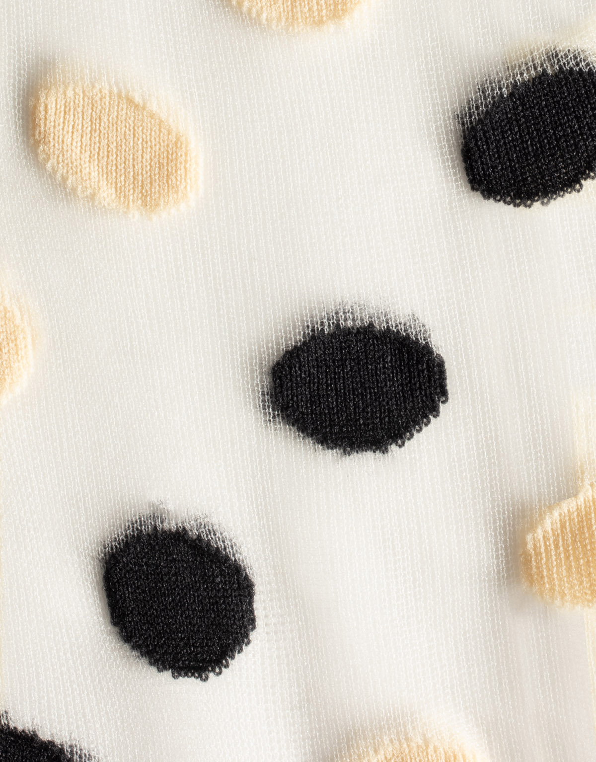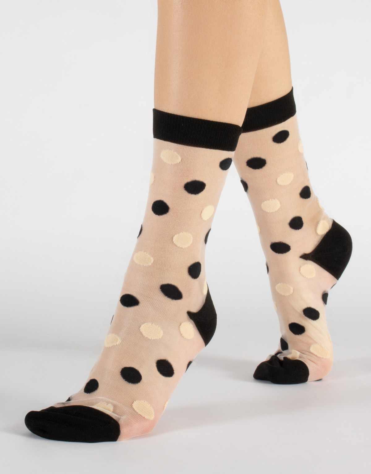 - Trendy nylon socks with big cream/black or cream/honey dots.