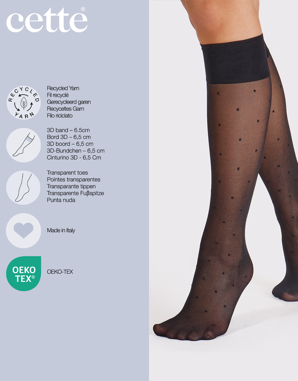 This is the reason why we created these polka dots knee-high socks, made of recycled polyamide, sustainable and eco-friendly.