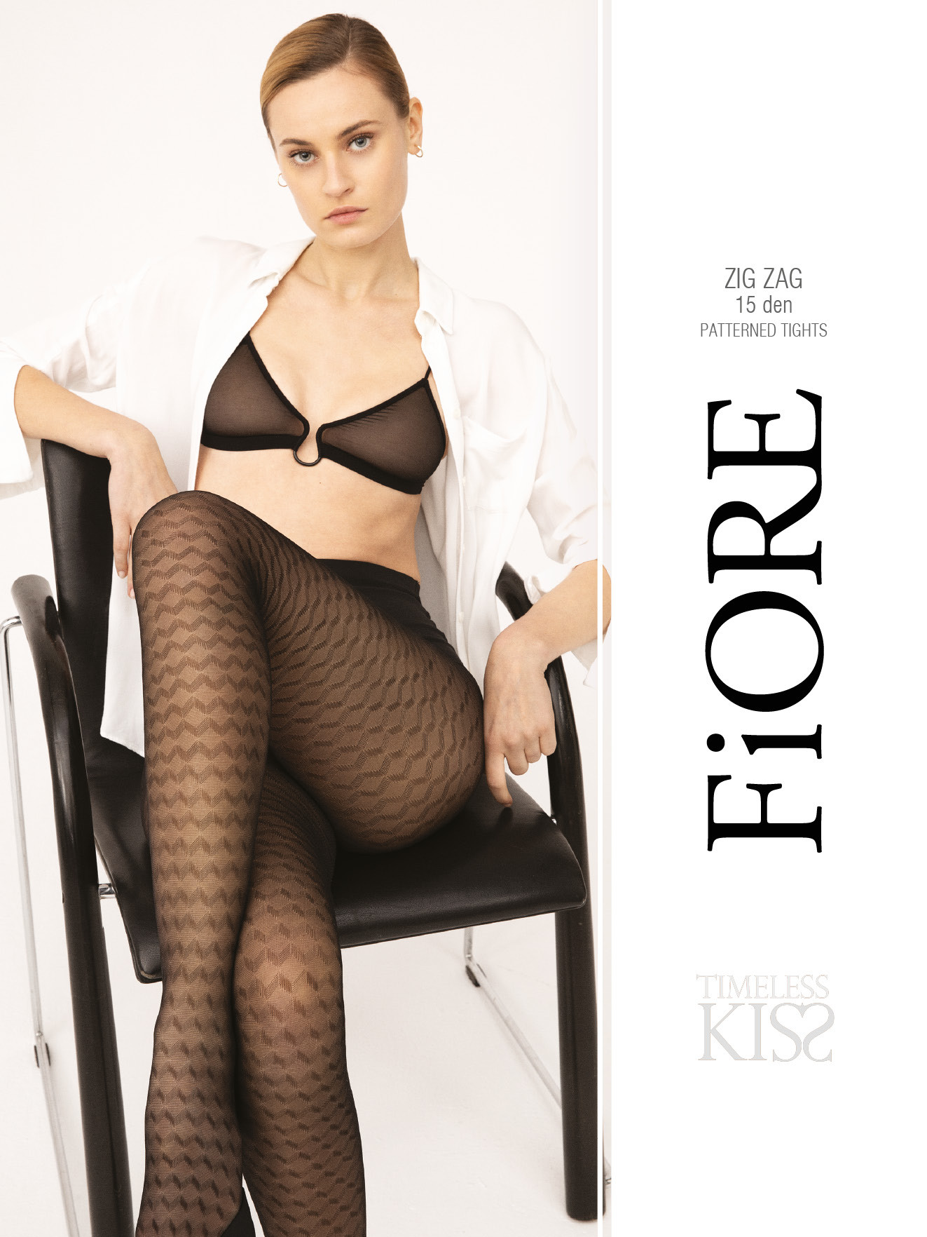 Fiore - Ugjennomsiktige siksak-mønstrede strømpebukser med melert utseende