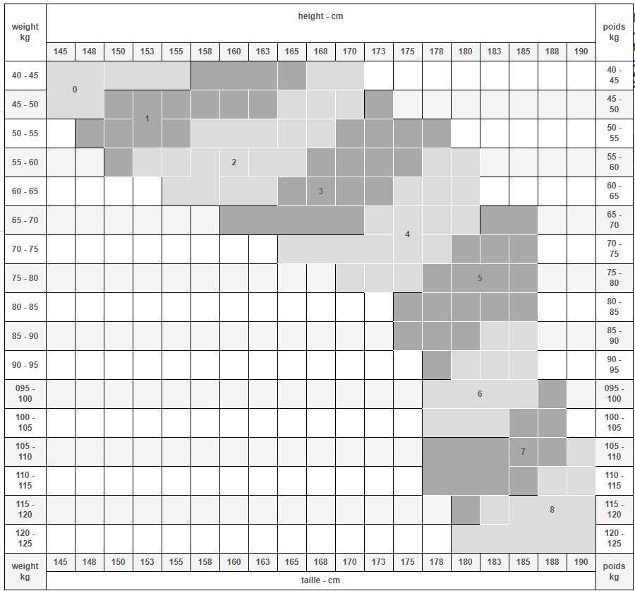 Tilgjengelige størrelser: 1/XS, 2/S, 3/M, 4/L