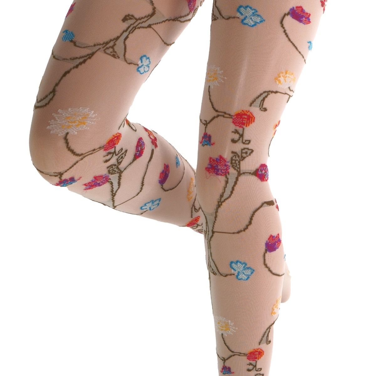Produktinformasjon "Trasparenze - Ugjennomsiktige strømpebukser med romantisk fargerik blomsterdesign"